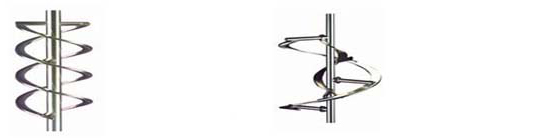 此類攪拌器為慢速型攪拌器,常在層流區(qū)操作,液體沿著螺旋面上升或下降形成軸向的上下循環(huán),適用于中高粘度液體的混合和傳熱等過程。常用介質(zhì)粘度μ<105cP,常用轉(zhuǎn)速n=0.5-50rpm,v=2m/s。LD螺帶式攪拌器的螺帶外廊接近于攪槽內(nèi)壁,攪拌直徑大,強(qiáng)化了進(jìn)罐壁的液體的上下循環(huán),高粘度液體的傳熱過程很適用。LDG螺帶螺桿組合式,同時具有螺桿和螺帶的特性,強(qiáng)化了液體內(nèi)外圍的循環(huán),特別對非牛頓型似塑性及粘彈性液體有效。ZLD錐底螺帶型,ZLG錐底螺帶螺桿型,其特點是底形可和錐形釜底相配,可按要求設(shè)計。