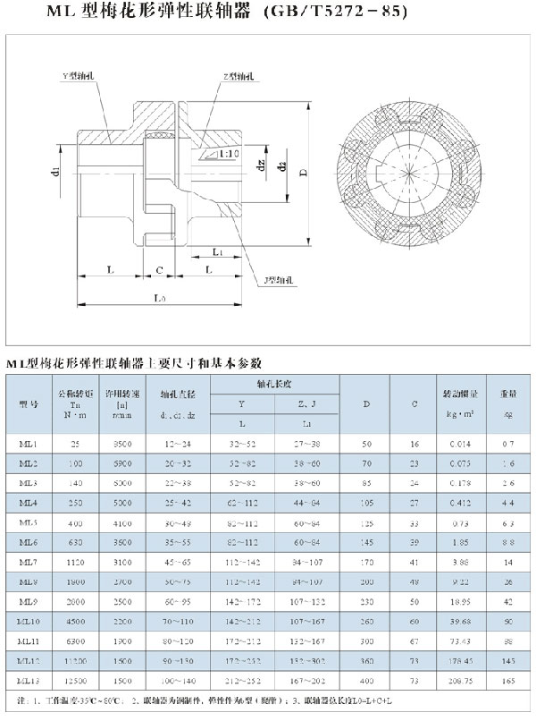 M(原ML)系列梅花形彈性聯(lián)軸器(GB5272-2002)