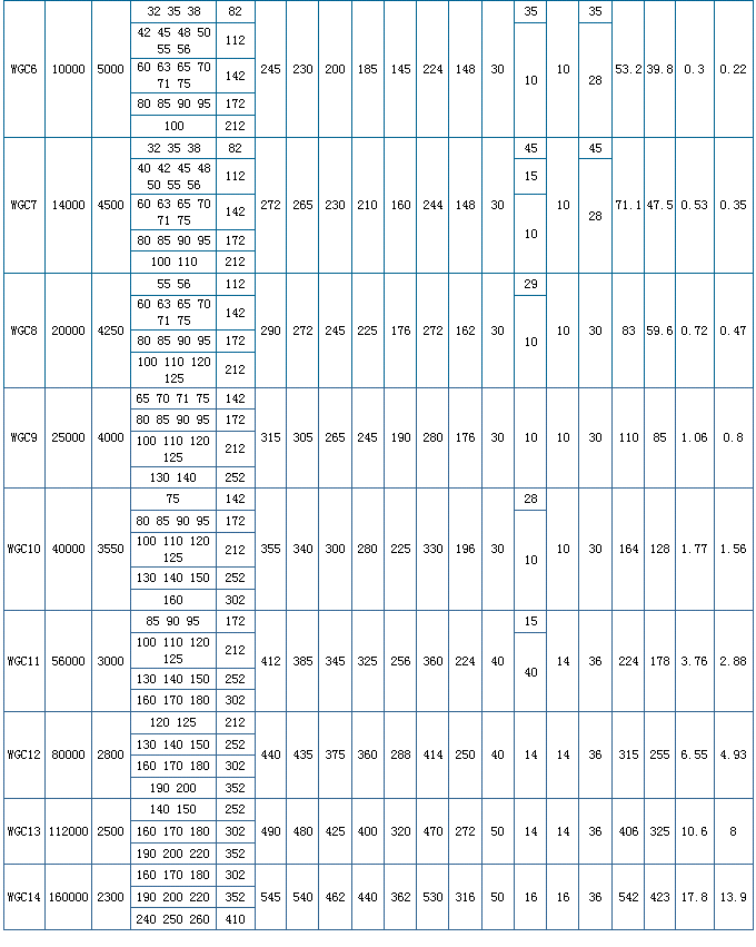 WGCⅡ型-垂直安裝鼓形齒式聯(lián)軸器基本參數(shù)和主要尺寸